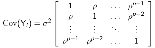 When measurements are not equally spaced over time the AR(1) covariance structure can be reformulated as an exponential structure. Let {ti1 ... tip} denote the observation time for subject i, and assume variance is constant across measurement occasions